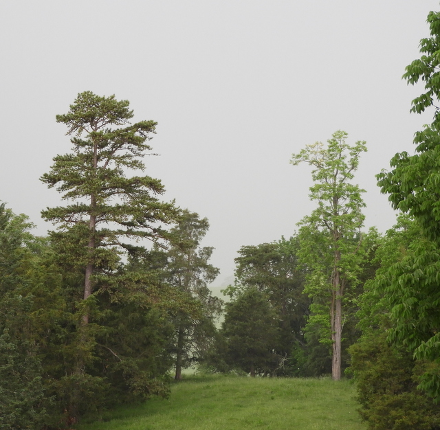 Can you find "the majestic horned deer" in this photo? I've been seeing it for several months. It's not a real deer, it's a bunch of branches that are shaped like one. The image is slowly going away as vines and other greenery take over, but I have enjoyed looking for my spirit deer during these crazy spring days.